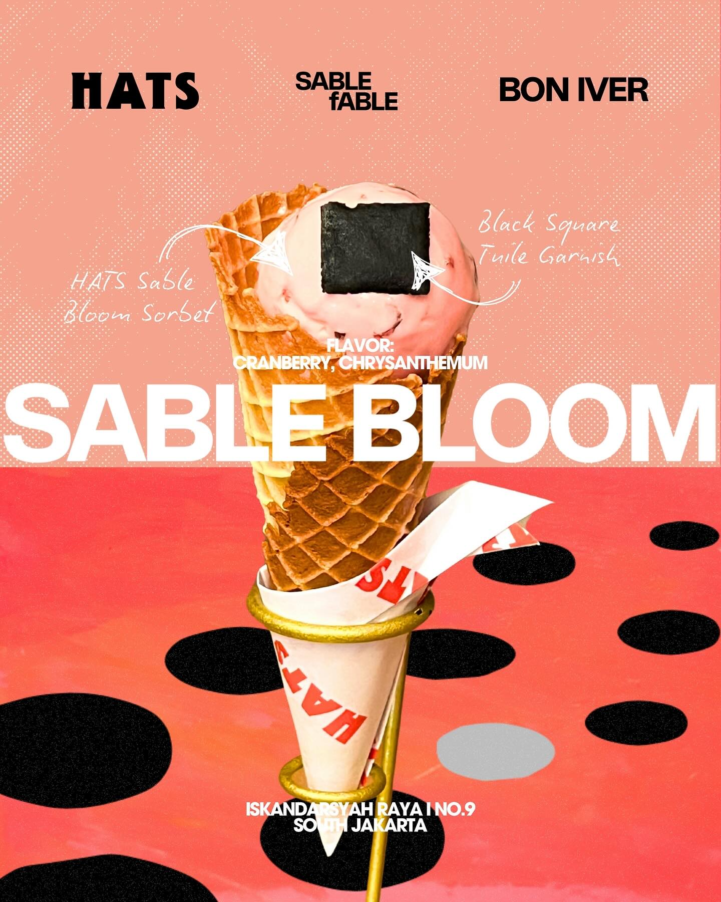 Sorbet SABLE BLOOM tersedia selama 11, 12 & 13 April, sementara cocktail dan mocktail fABLE FIZZ tersedia pada 11 & 12 April. Untuk setiap pembelian menu item kolaborasi ini, para pembeli akan mendapatkan freebies Bon Iver (persediaan terbatas). Mereka juga dapat mendaftarkan diri mereka untuk mengikuti raffle yang berhadiah satu buah vinyl ‘SABLE, fABLE’. Album ‘SABLE, fABLE’ juga akan dimainkan sepanjang hari di HATS selama kolaborasi ini berlangsung.