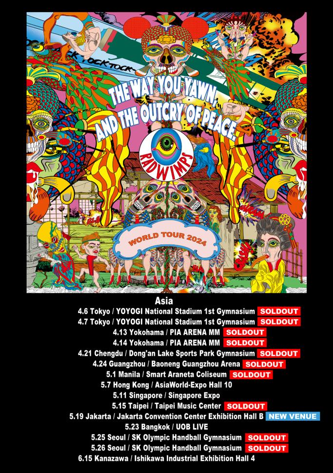 Jadwal RADWIMPS WORLD TOUR 2024 “The way you yawn, and the outcry of Peace” Asia