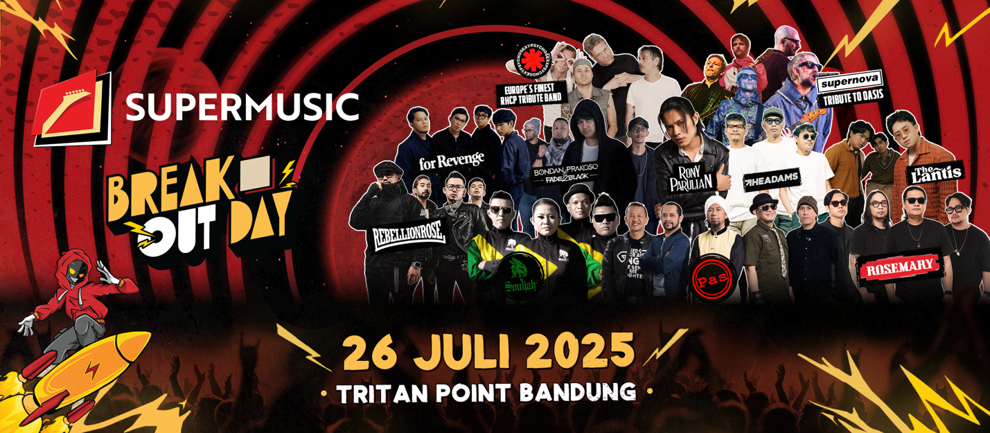 Super Music Break Out Day 2025 berhasil menampilkan musisi-musisi nasional terbaik dengan gebrakan dua tribute internasional acts: Supernova – Tribute to Oasis dan Psycho Sexy – Tribute to Red Hot Chili Peppers (RHCP), kehadiran kedua tribute act tadi malam telah membius penonton dengan aksi panggung penuh energi dan nuansa yang sangat otentik, seakan menyaksikan langsung grup aslinya. Tak kalah istimewa penampilan Line Up Nasional yang berhasil menghentak dan menghibur Super Friends di Super Music Break Out Day 2025 bersama Bondan Prakoso & Fade2Black, For Revenge, PAS BAND, Rebellion Rose, Rony Parulian, ROSEMARY, Souljah, The Adams, The Lantis, Salt N Pepper, Menssana dan Noor Radar.