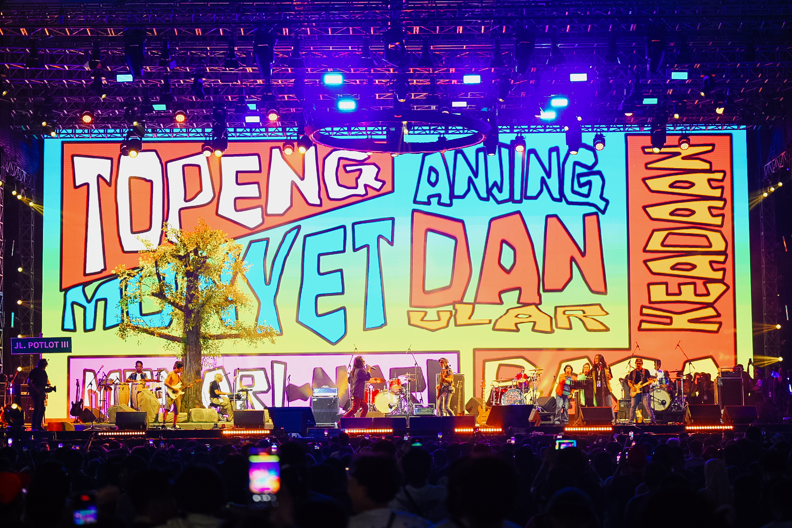 “I believe, we all miss him,” ujar Awan Garnida mewakili Sore di tengah set. Suasana semakin haru ketika rekaman suara mendiang Ade Paloh diputar saat lagu “Mata Berdebu” dimainkan. Area Gigs Stage sore itu pun tidak kalah seru. Hadir nama Kaveh Kanes yang baru saja kembali ke permukaan setelah sempat lama vakum, disusul oleh unit punk kebanggaan Yogyakarta, DOM 65 serta Hardik, kelompok hardcore yang berasal dari Tasikmalaya.