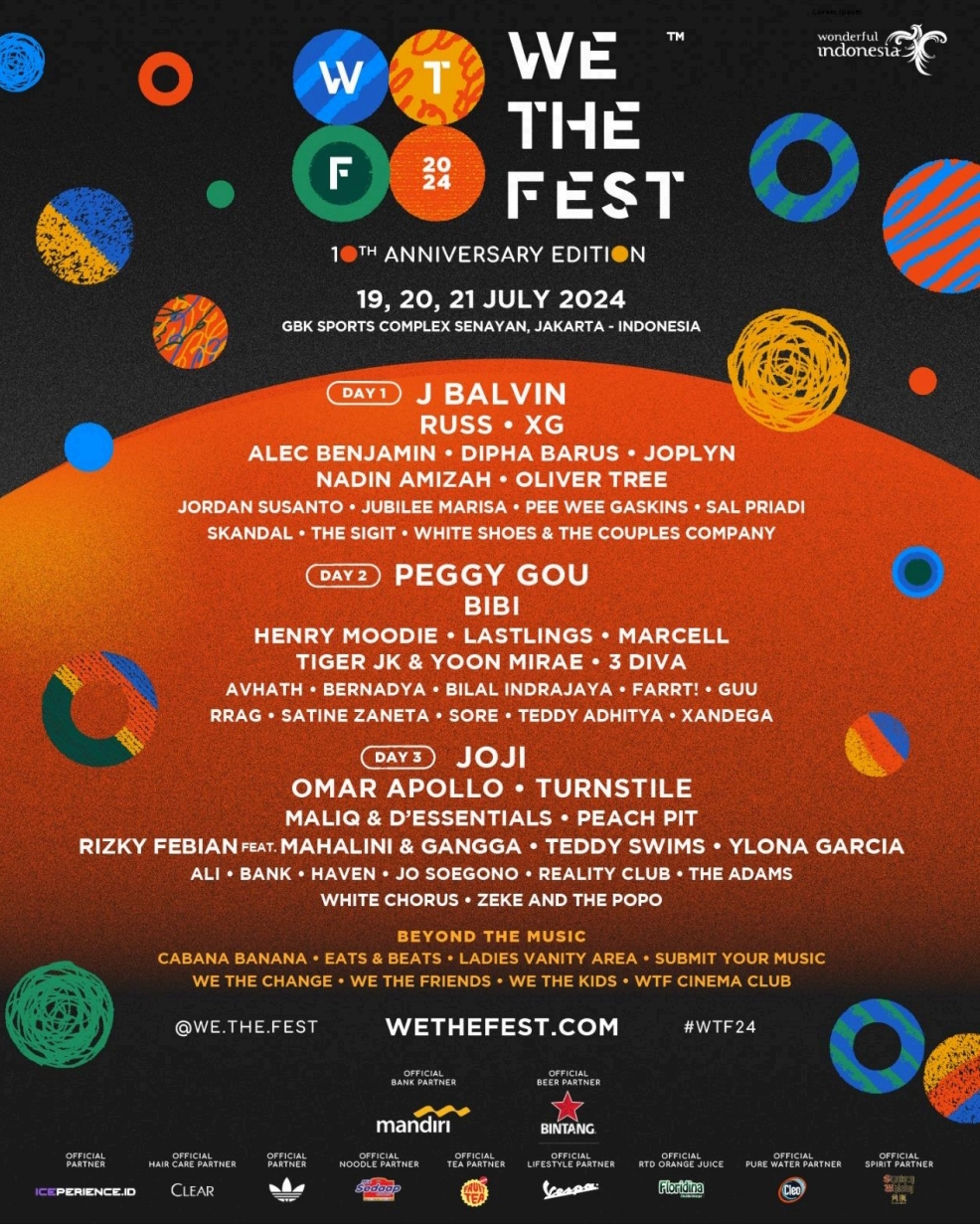 “Sebagai bagian dari komitmen kami untuk terus mendukung industri kreatif di Indonesia,partisipasi kami di acara ini menunjukkan dukungan nyata Bank Mandiri terhadap pertumbuhan industri ini. We The Fest telah menjadi platform yang luar biasa untuk menampilkan bakat-bakat kreatif dari berbagai bidang, dan kami bangga bisa menjadi bagian dari perjalanan ini,” ujar Ali. Bank Mandiri sebagai Official Banking Partner, juga tidak hanya memberikan kemudahan dalam pembelian tiket melalui Livin’ by Mandiri, tetapi juga menyediakan solusi kebutuhan gaya hidup yang relevan.